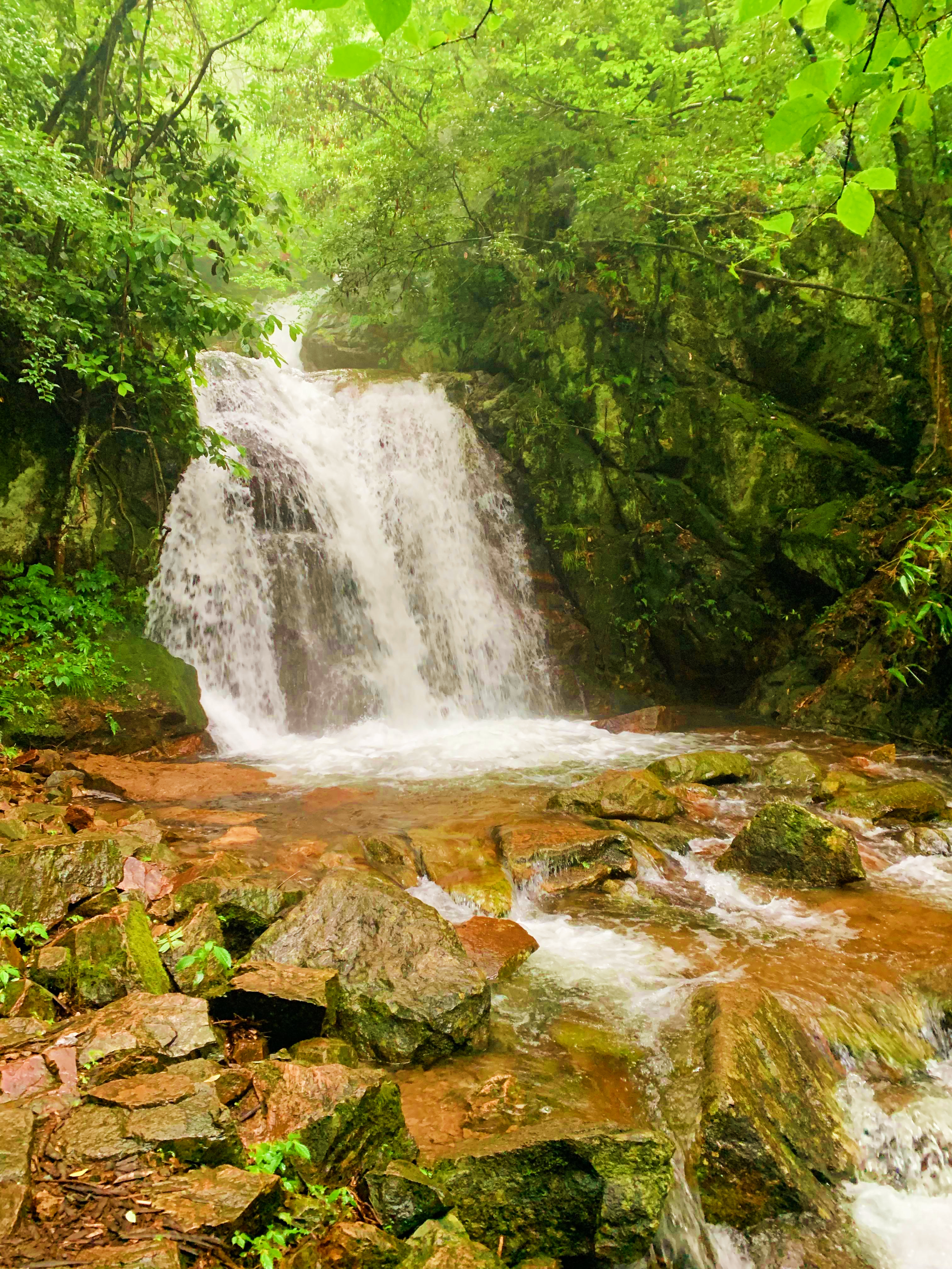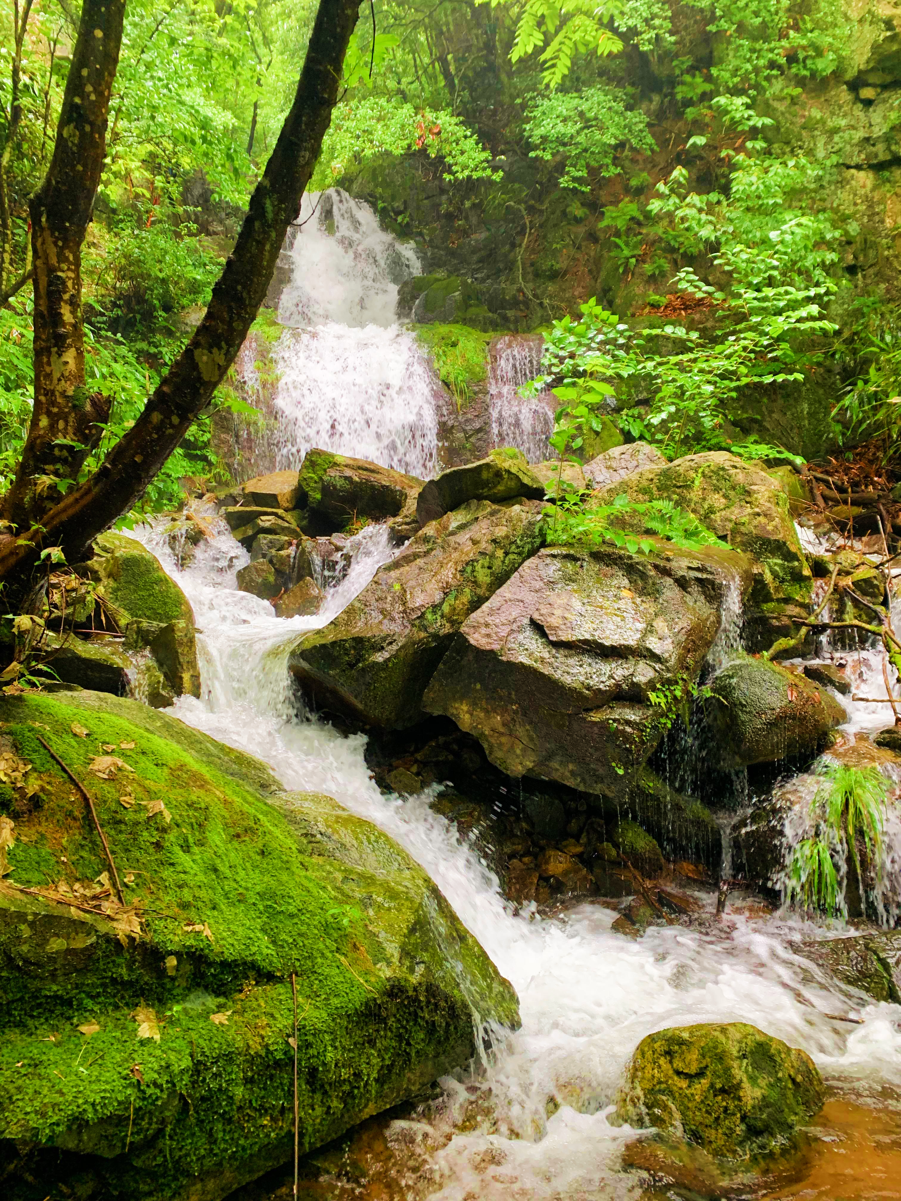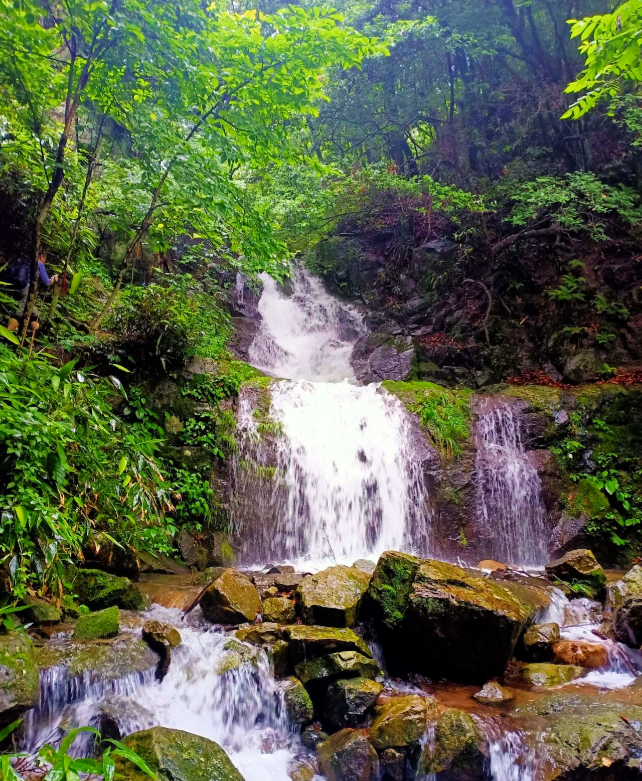 顺吴越古道石板路台阶而上一路溪流陪伴,瀑布奏鸣曲径通幽,跌宕起伏天地人合一,似在画中游。