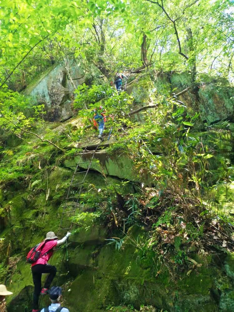 12:30左右,我们抵达宁国吴越古道山脚农家午餐,餐后稍作休息后,乘车前往黑洞布群的入口,顺瀑布一路往上,环线全程约6km,预计用时3h。